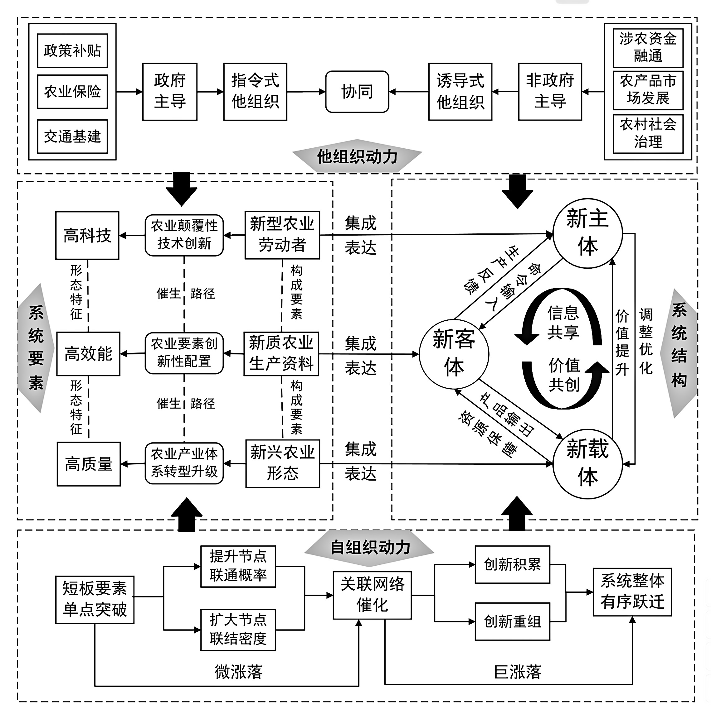 在此背景下,郑军教授提出要秉持系统集成的方法论,精准识别并打通因地制宜发展农业新质生产力的痛点与堵点。在郑军教授指导下,研究团队一方面深入阐释农业新质生产力的系统要素、系统结构与系统动力,构建“新主体—新客体—新载体”三维评价指标体系,从系统视阈把脉何为农业新质生产力。另一方面,以三大功能区为切入点进行量化测度,利用障碍度模型剖析系统内部的自组织演进路径,借助动态QCA梳理系统外部的他组织演进路径,从内部自组织与外部他组织的双重视角研判如何因地制宜发展农业新质生产力。